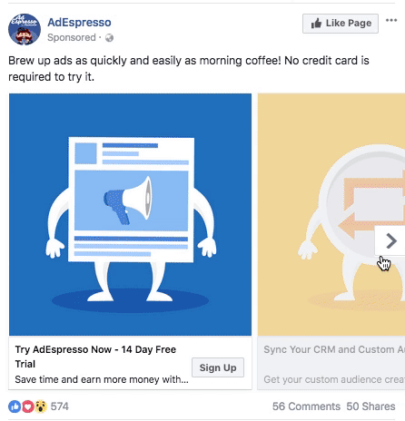 AdEspresso的轮播广告包含每个部分的相关图片: