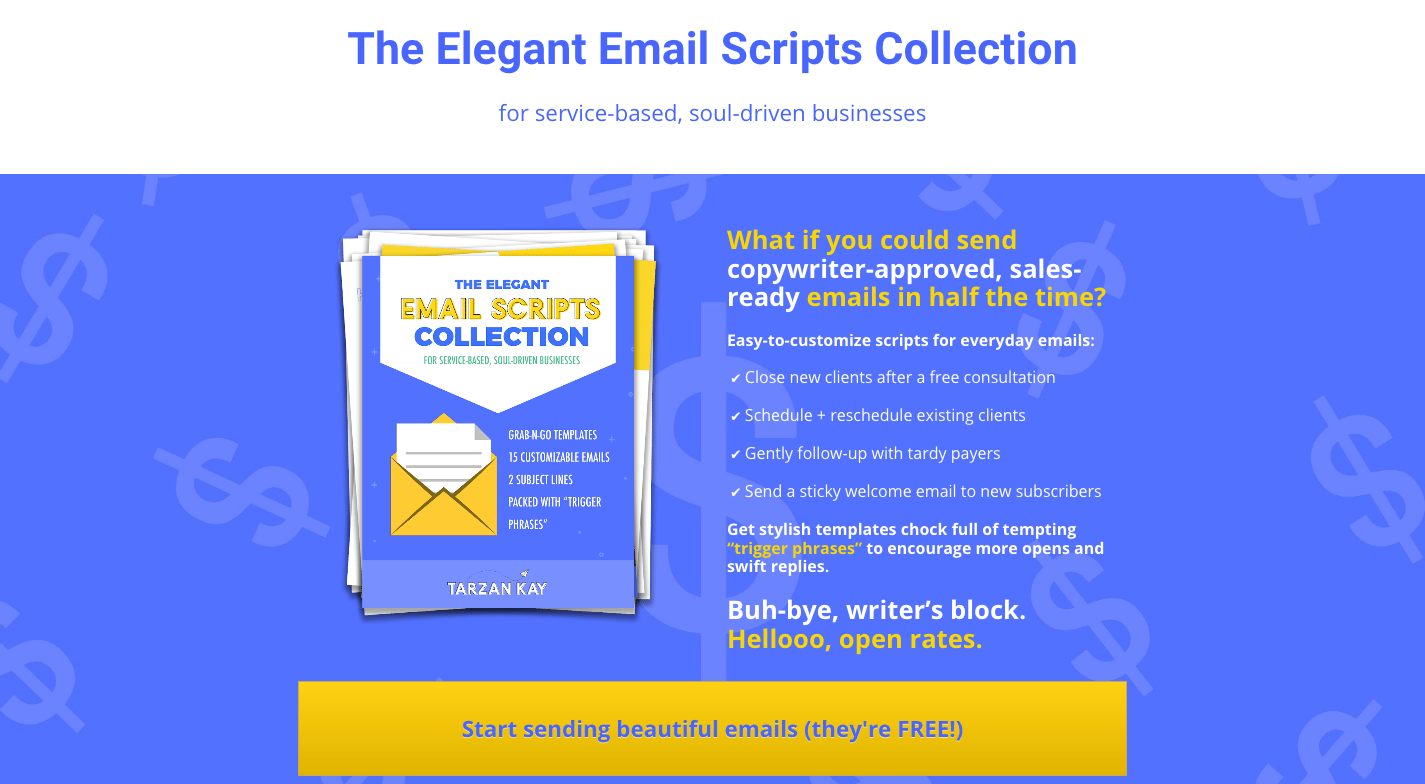 该广告讨论了基于服务的企业的电子邮件脚本。这是广告带来的目标网页: