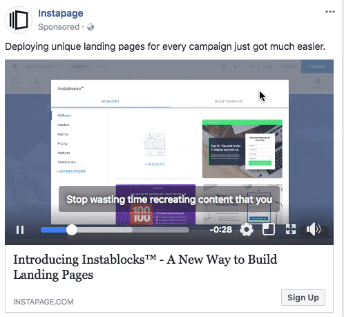 以下是Instapage Instablocks™功能更新的Facebook广告